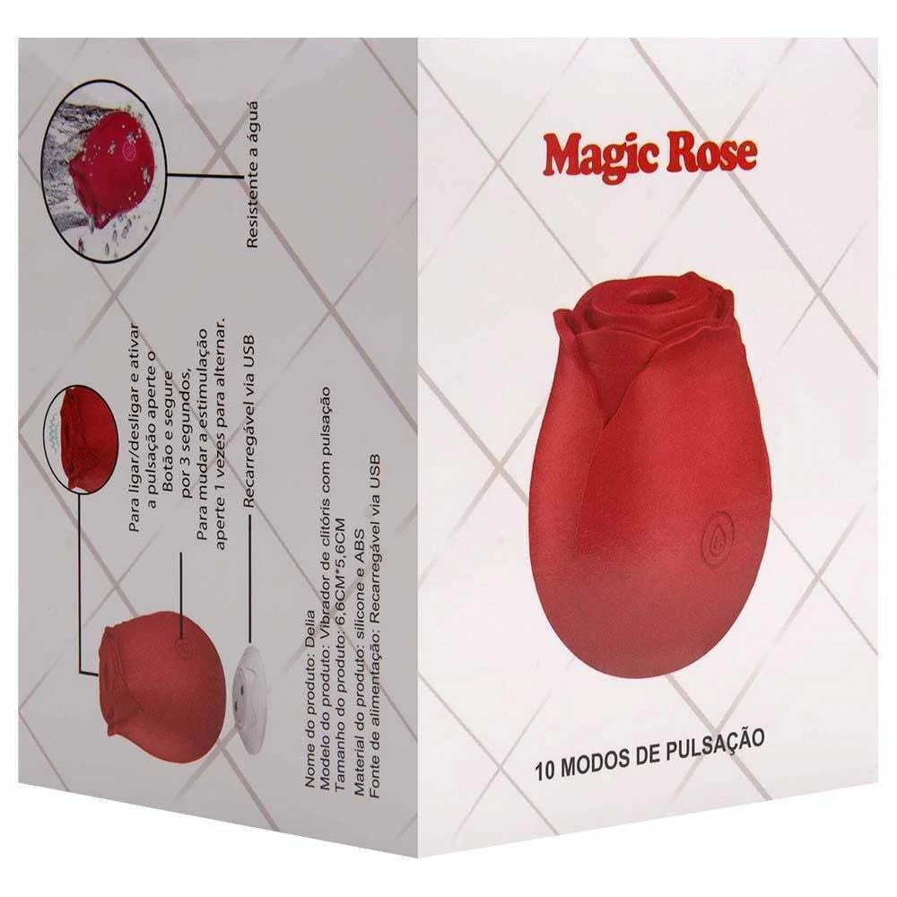 Design Ergonômico: Formato de rosa que facilita o manuseio e a estimulação do clitóris.